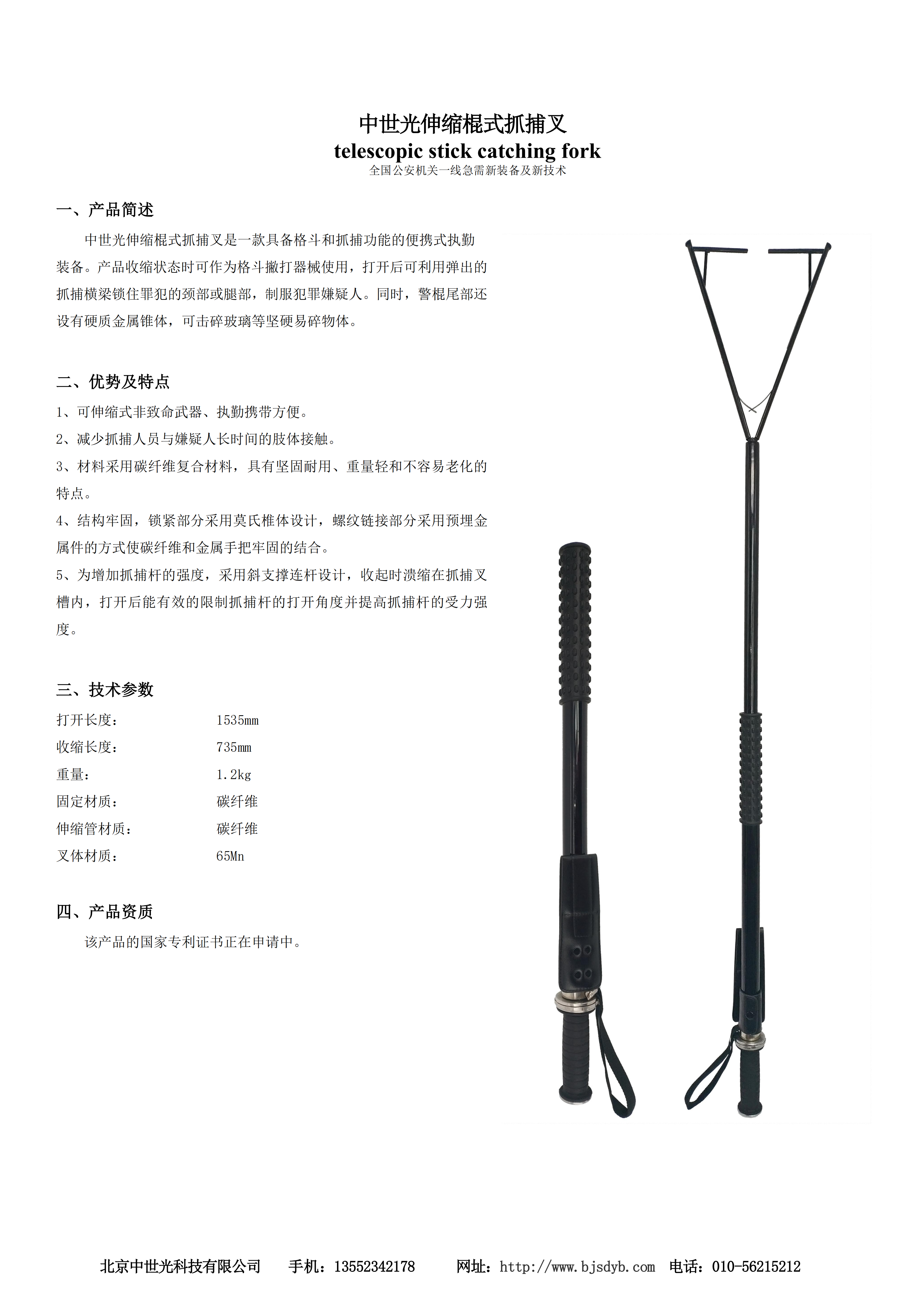 1、可伸缩式非致命武器、执勤携带方便。